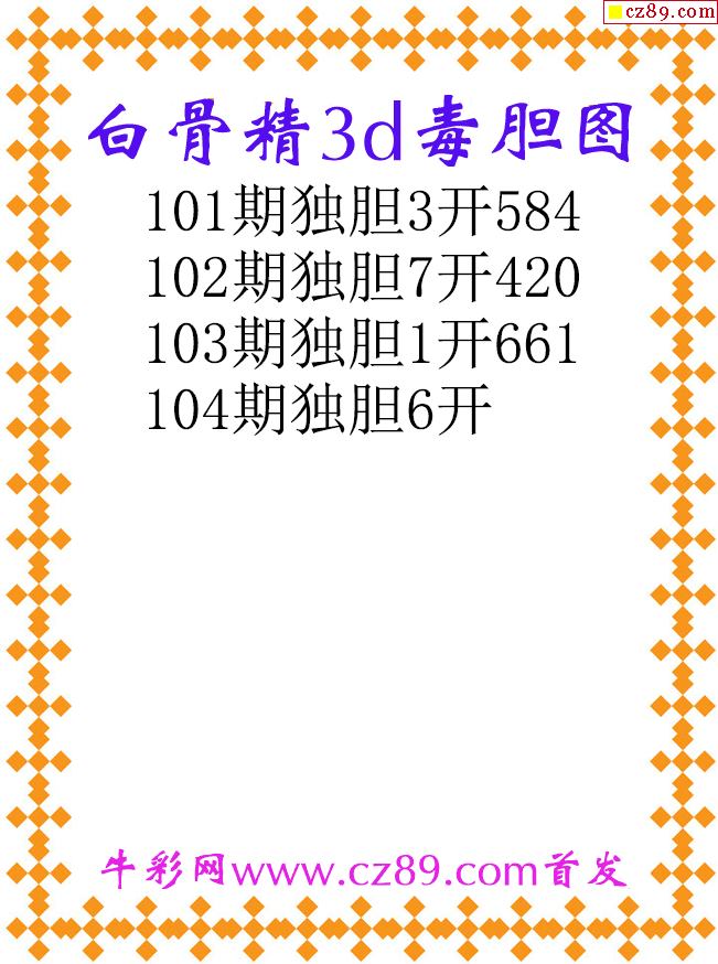 白骨精独胆26104期3d原创图谜