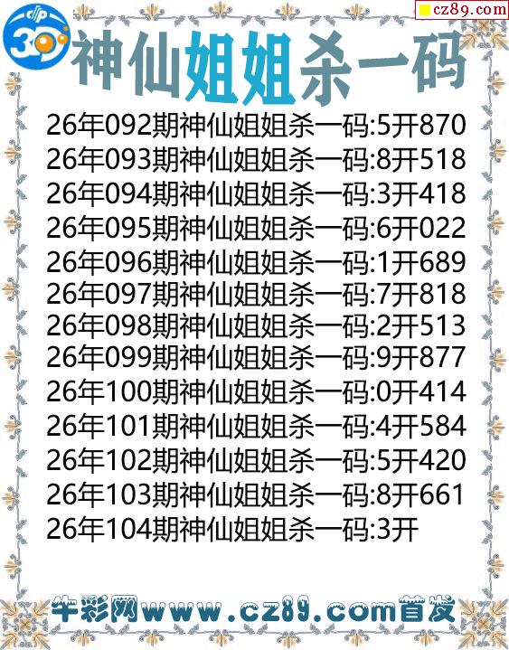 神仙姐姐杀一码104期3d图谜