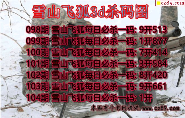 雪山飞狐杀码2026104期3d图谜(原创)