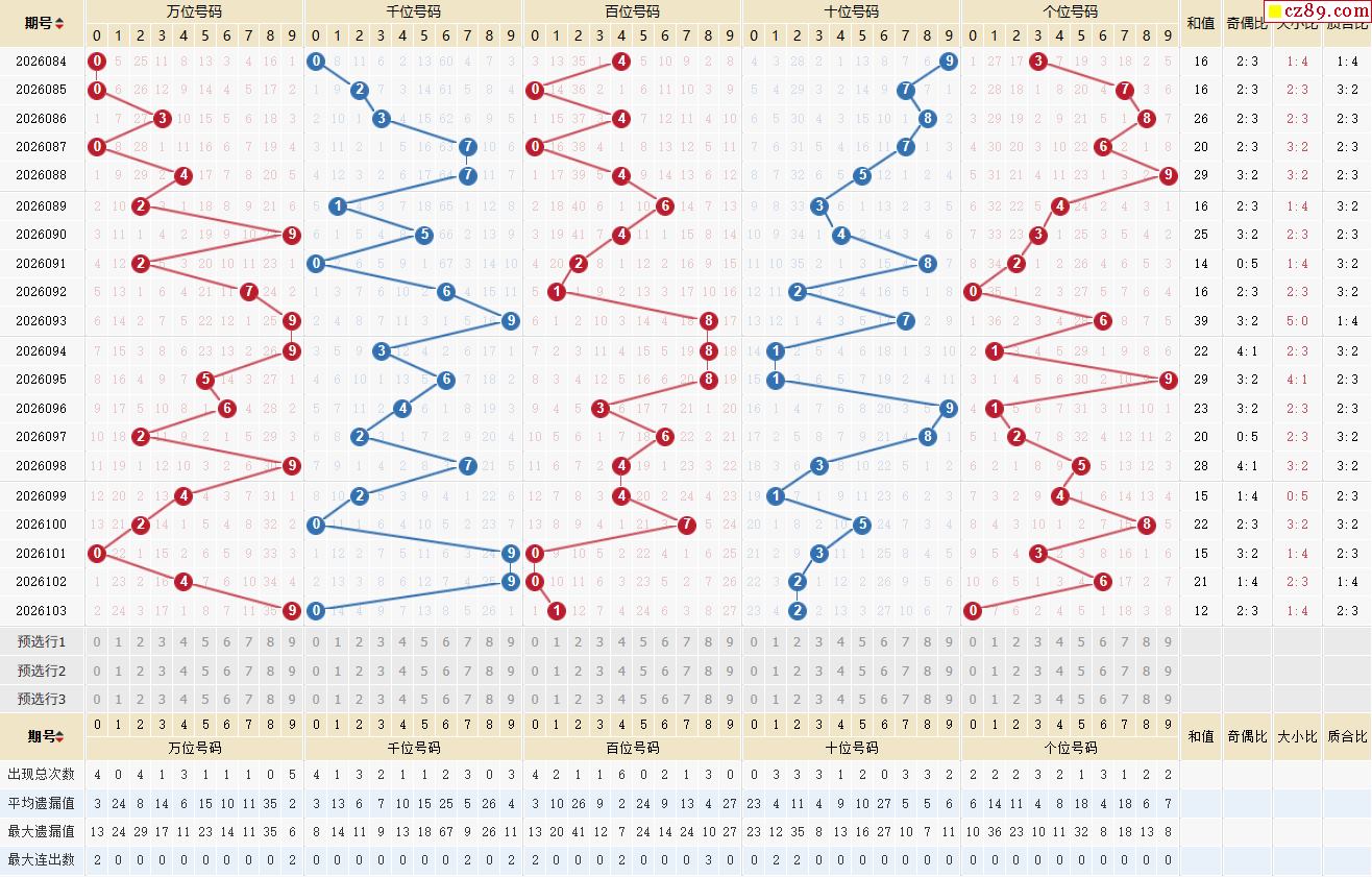 104期体彩排列5近期历史号码图表