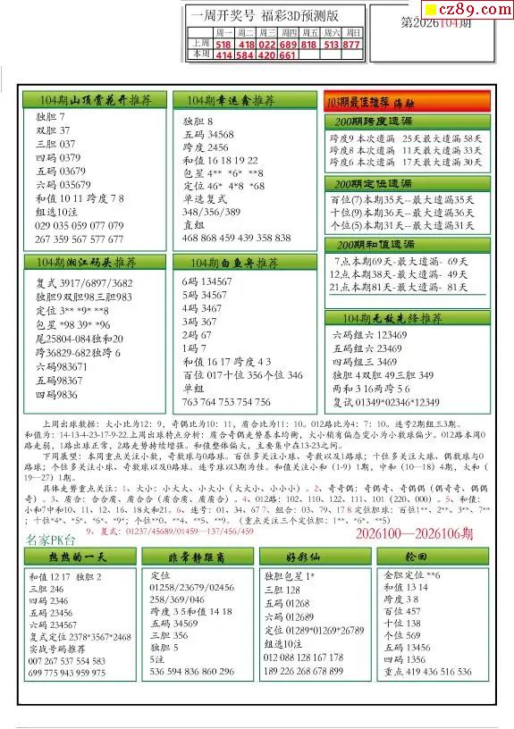 牛彩版3D预测彩报图26年104期打印版
