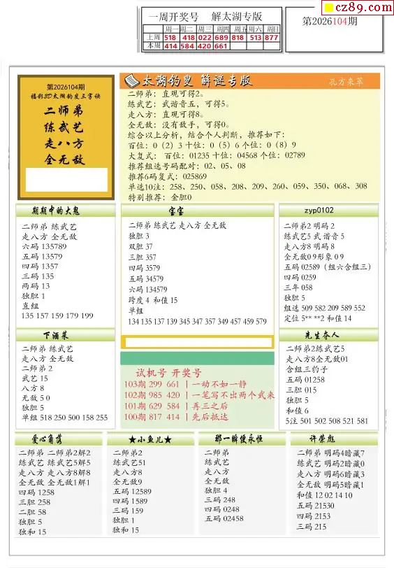 2026104期解太湖3d字图迷汇总报