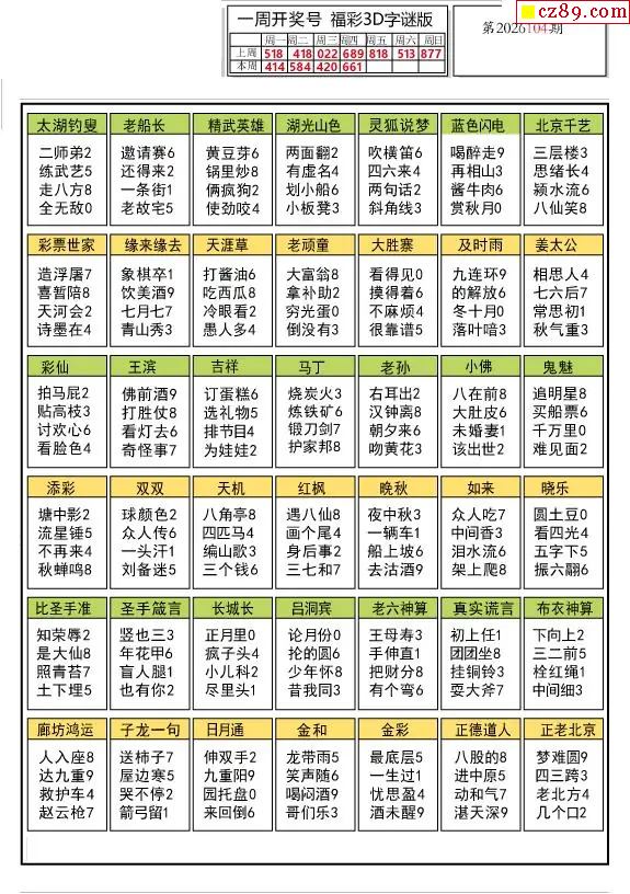 2026104期3d字谜图谜总汇