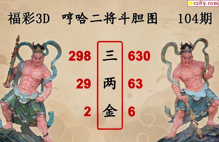 福彩3D2026104期 白鱼舟3D图谜哼哈二将斗胆图