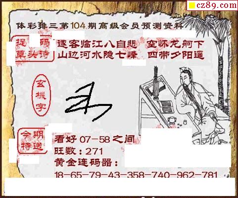 正版天庚26年104期体彩p3图迷