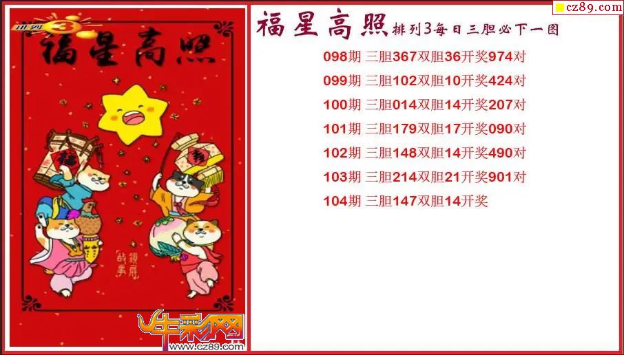 2026104期P3福星高照每日三胆必下一图