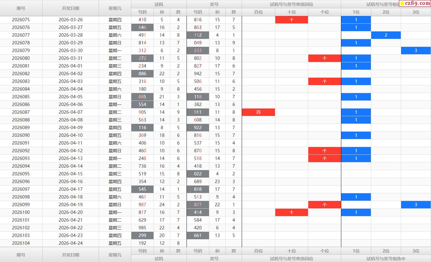 26年105期福彩3D彩神通关注码历史记录