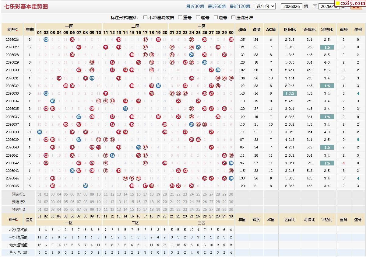 七乐彩基本走势图