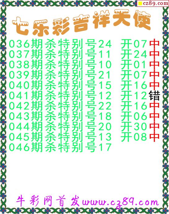 七乐彩2026046期流光岁月杀码图谜 10中3
