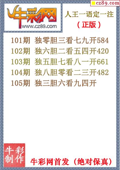 2026年105期七绝圣手3d和尾字谜【牛彩网...
