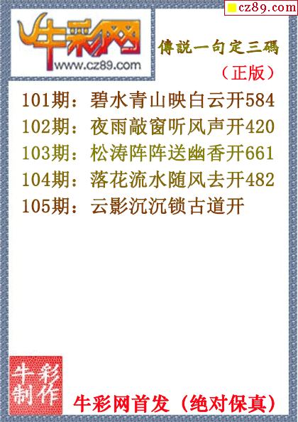 2026年105期七绝圣手3d和尾字谜【牛彩网...