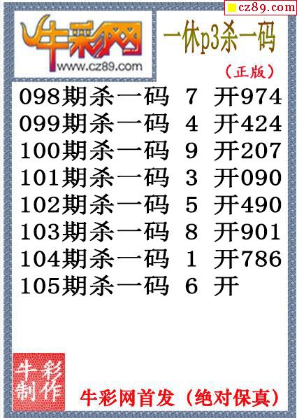 26年105期公孙宇P3杀码图