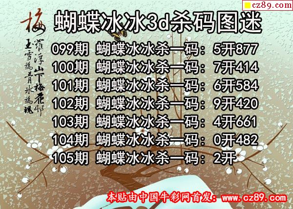 蝴蝶冰冰杀码2026105期3d图谜(原创)
