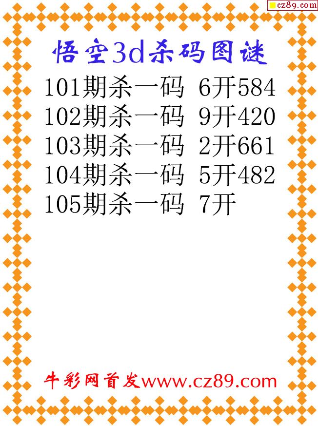 悟空杀码26105期3d原创图谜
