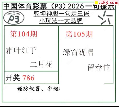 2026年105期牛彩网体彩P3画迷图谜汇总分享
