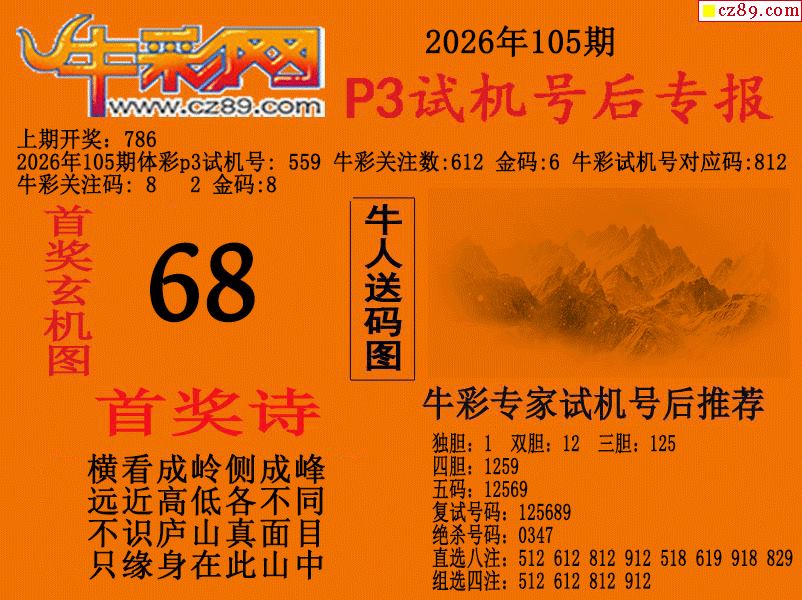 2026105期p3试机号后牛彩网专报