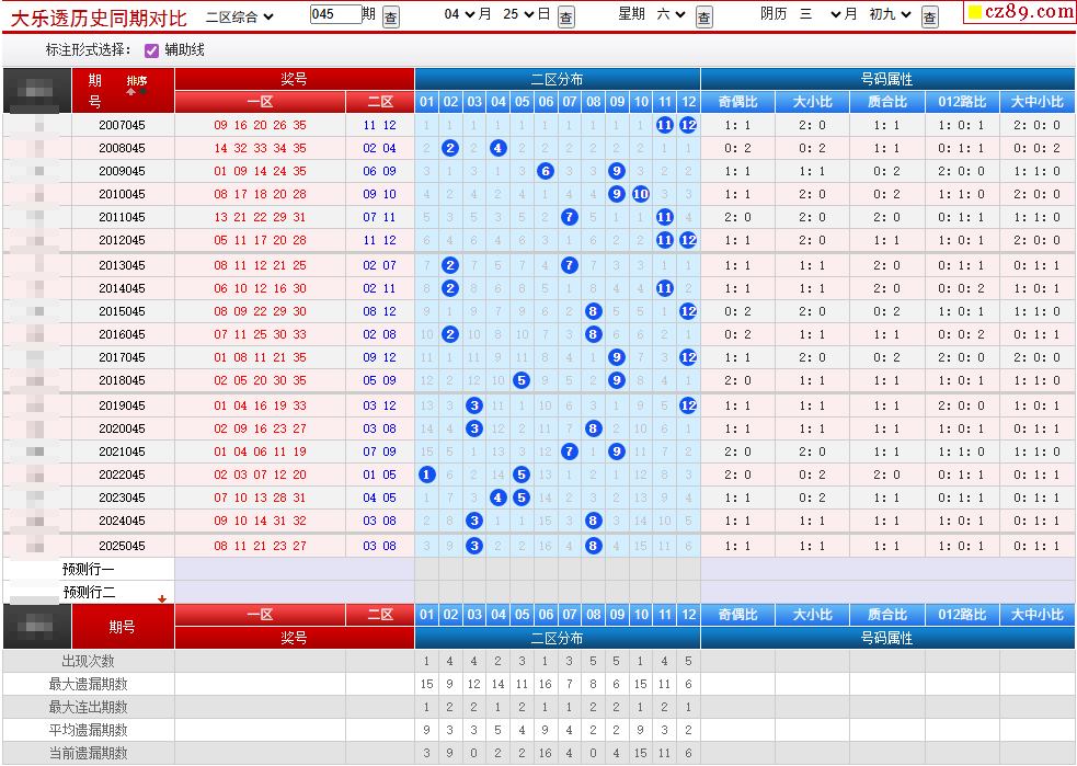 26年超级大乐透044期 刘胜前区重号奇偶三区分析