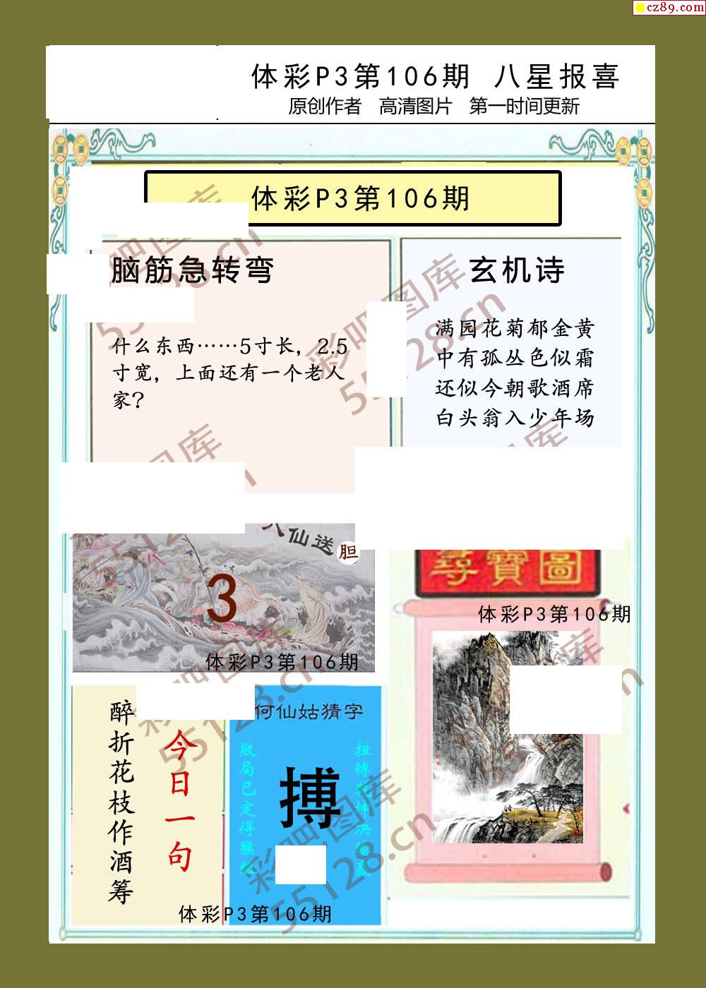 2026年106期牛彩网体彩P3画迷图谜汇总分享
