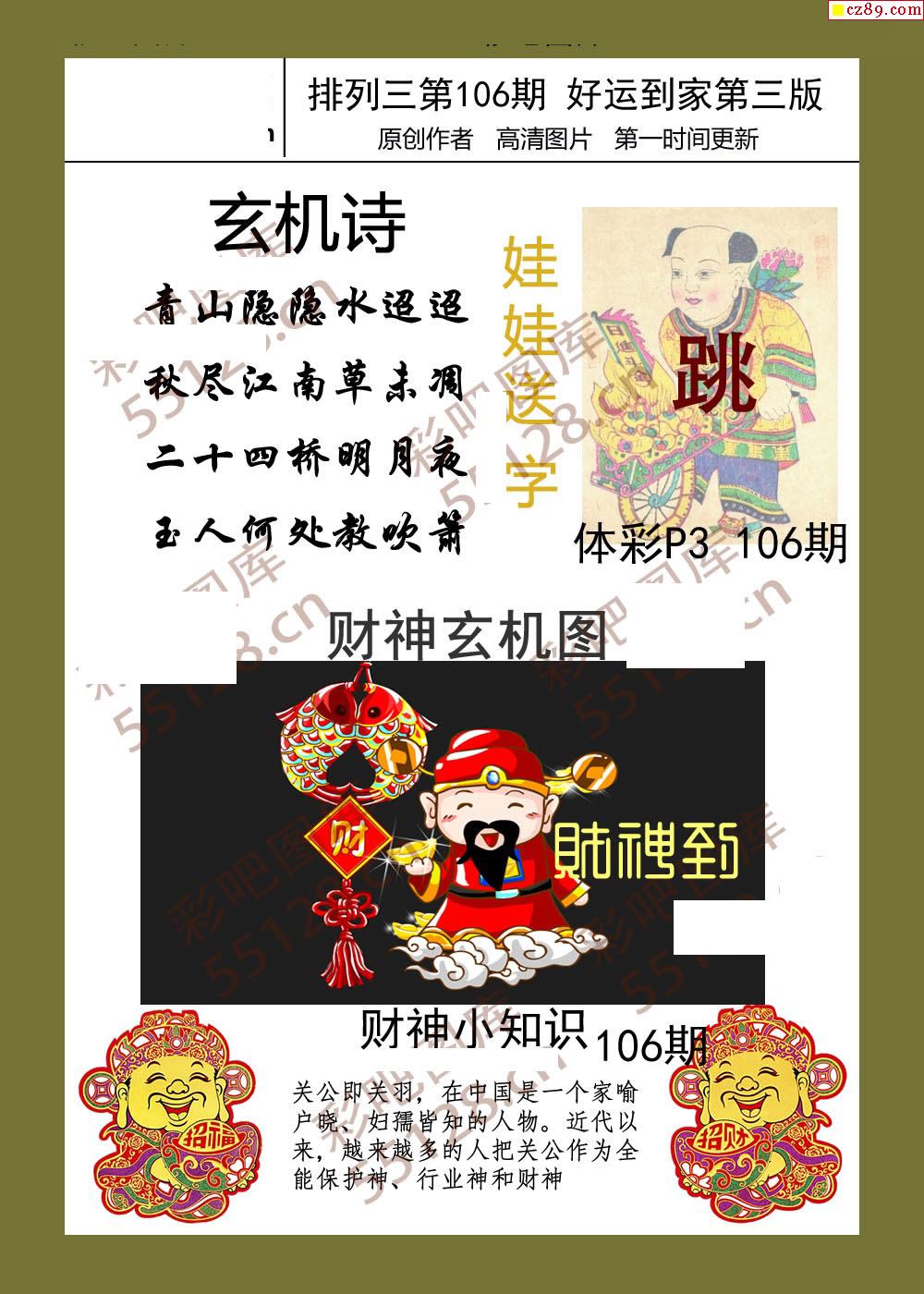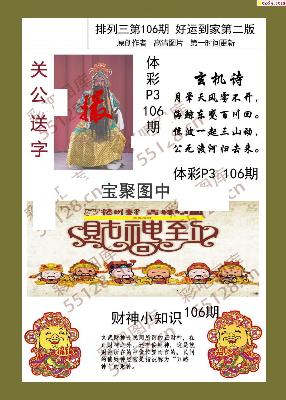 好运到家系列106期体彩p3图谜