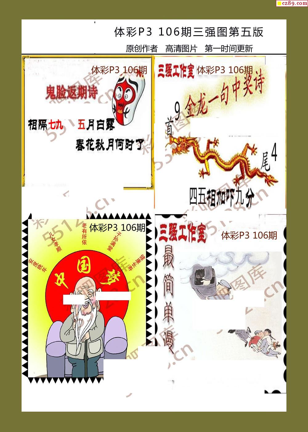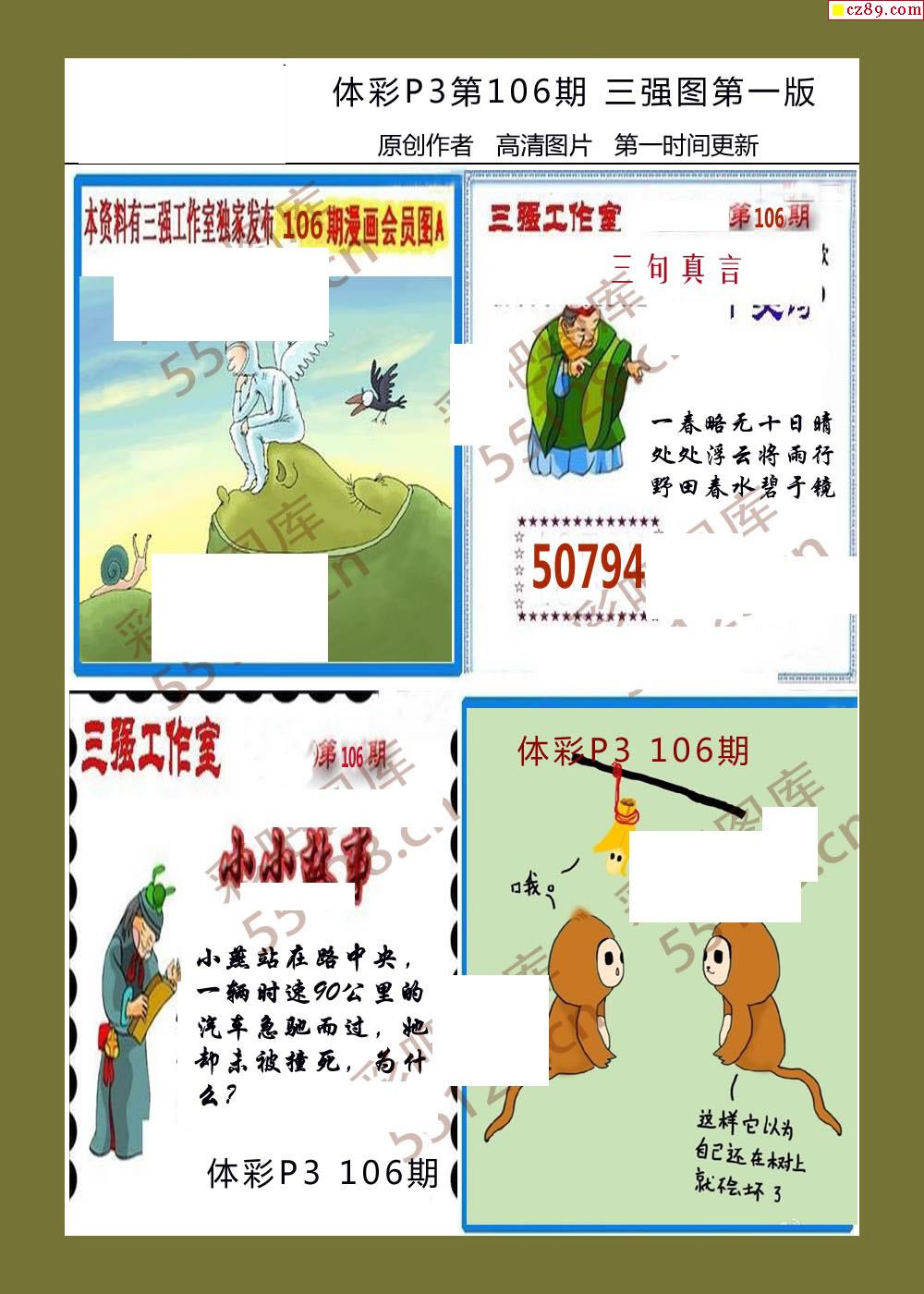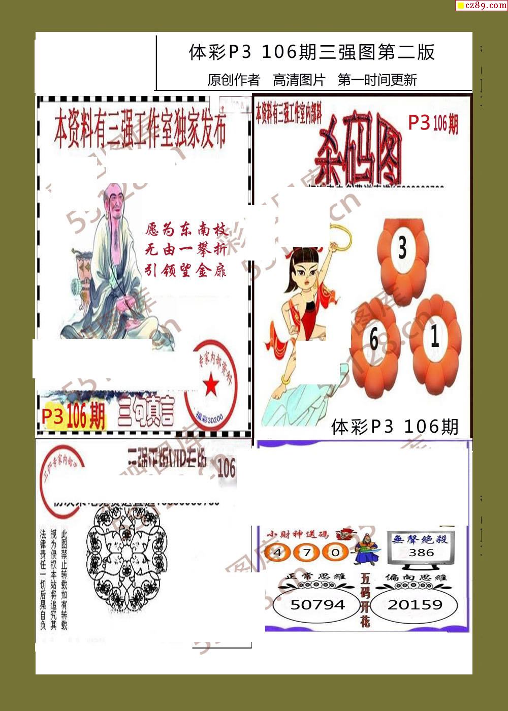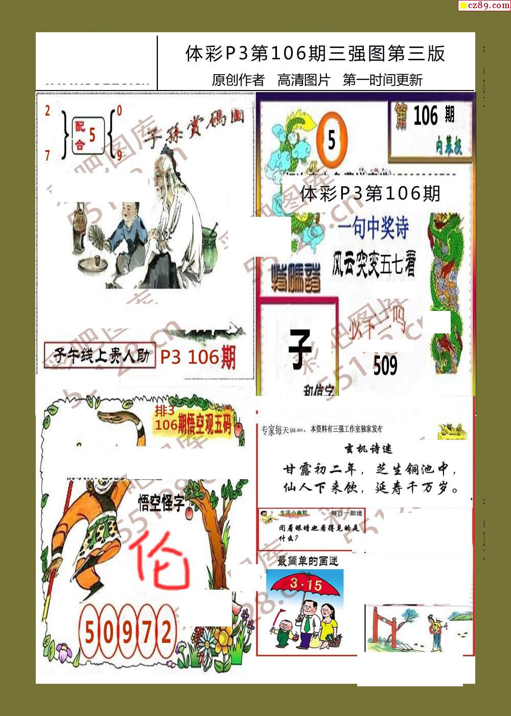 三强图系列106期体彩p3图谜
