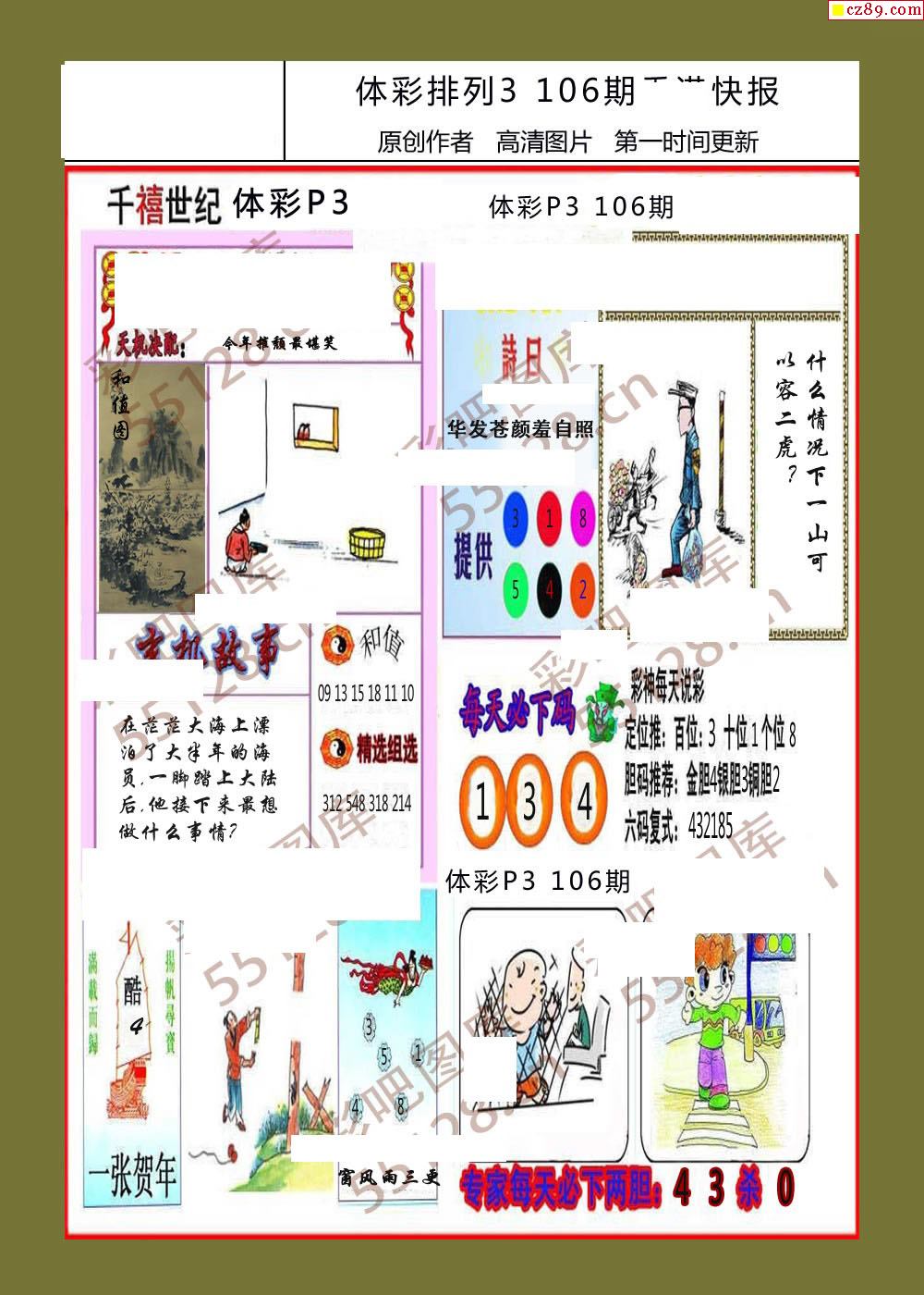 2026年108期牛彩网体彩P3画迷图谜汇总分享