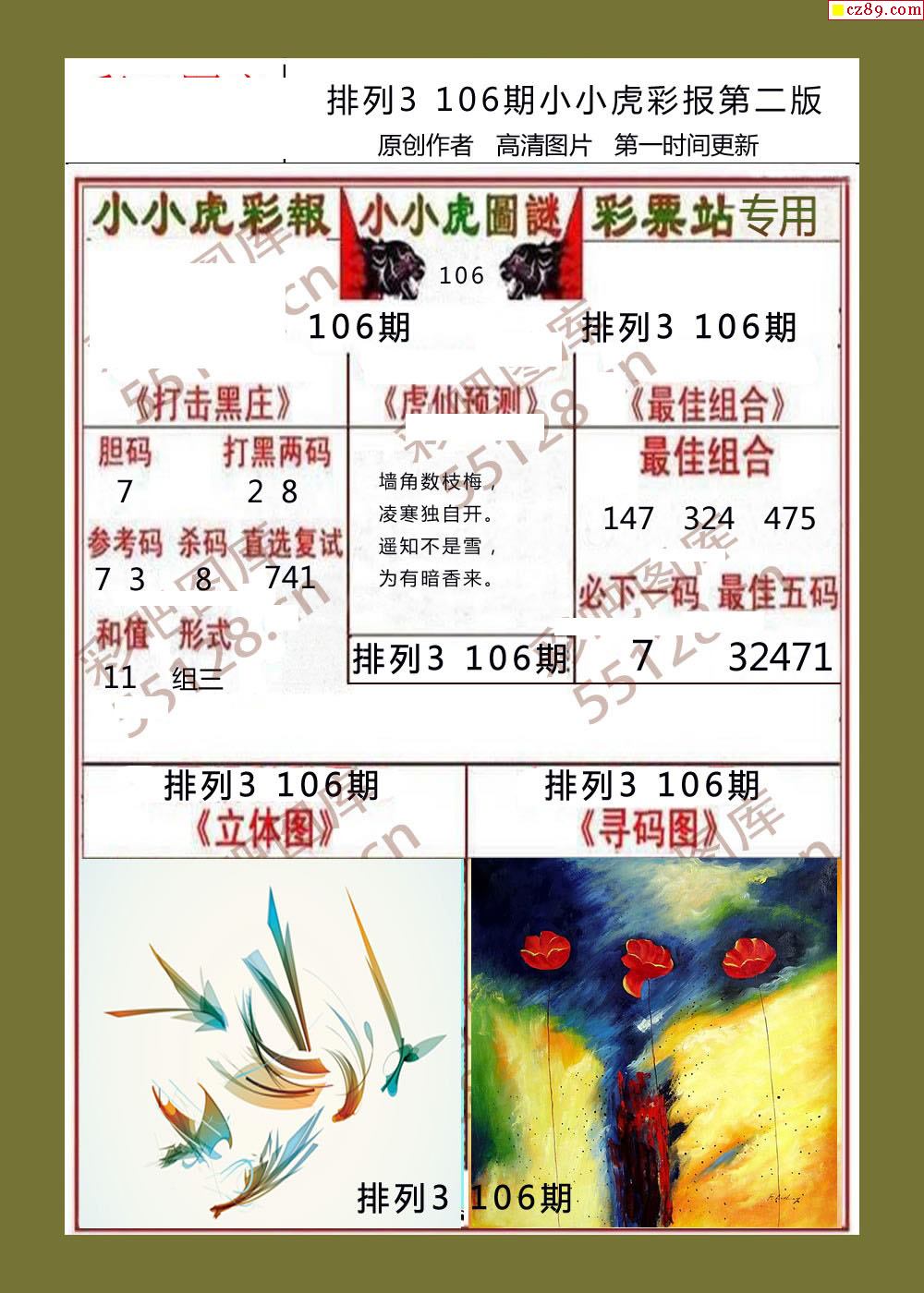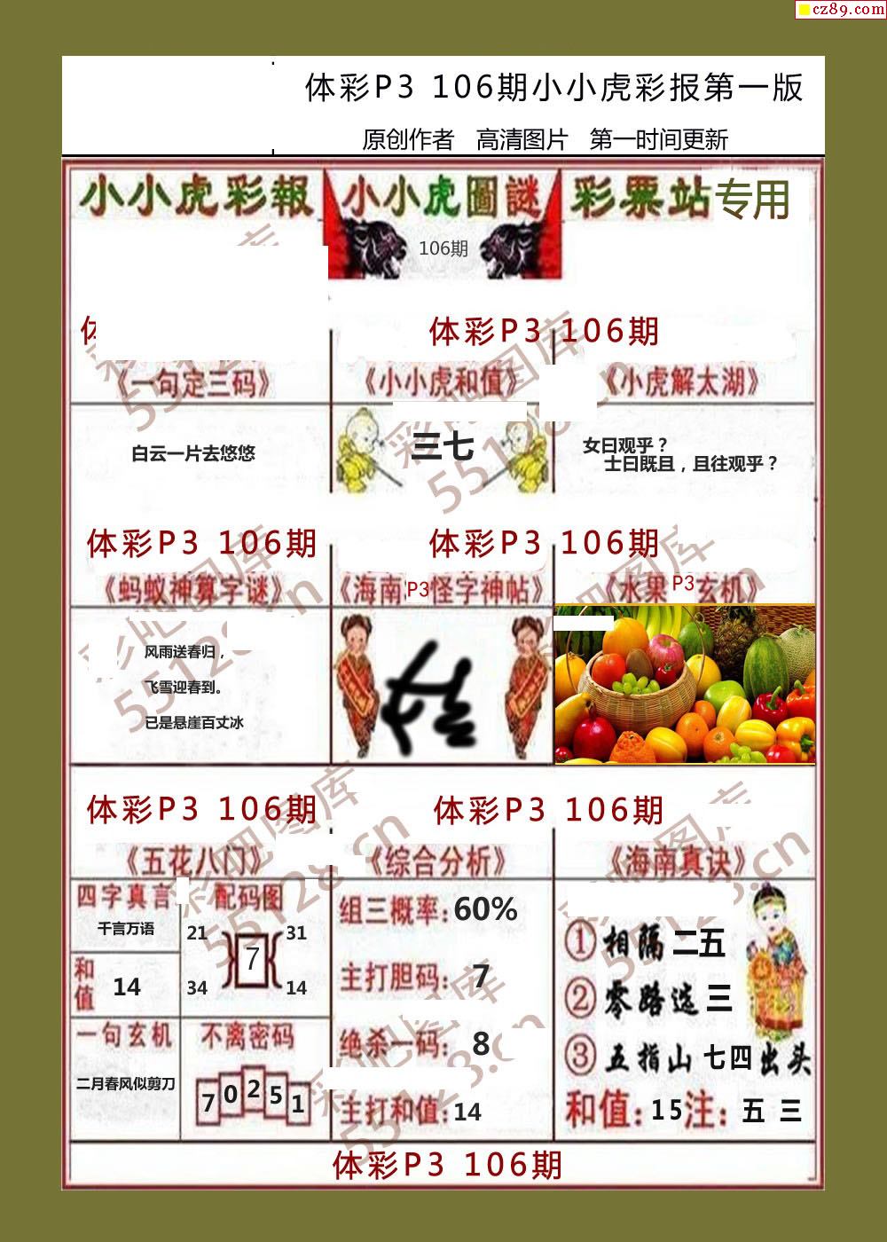 小小虎彩报106期体彩p3图谜