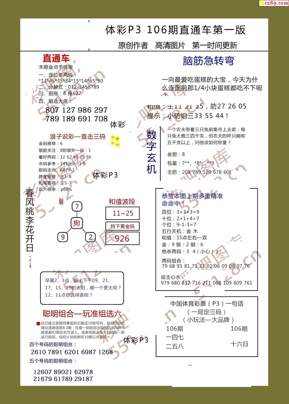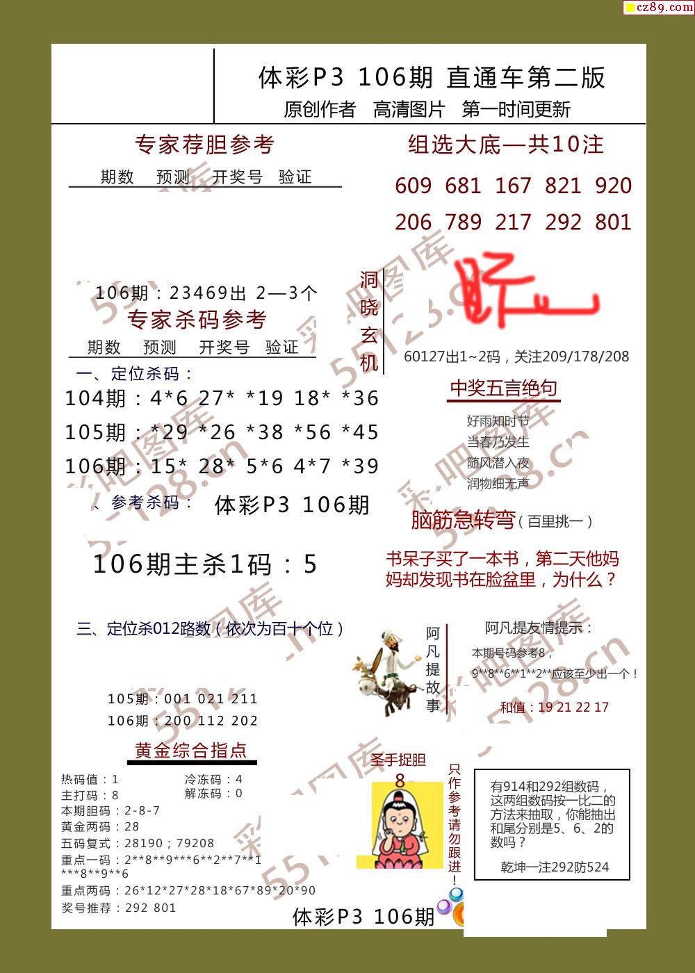 直通车AB版106期体彩p3图谜