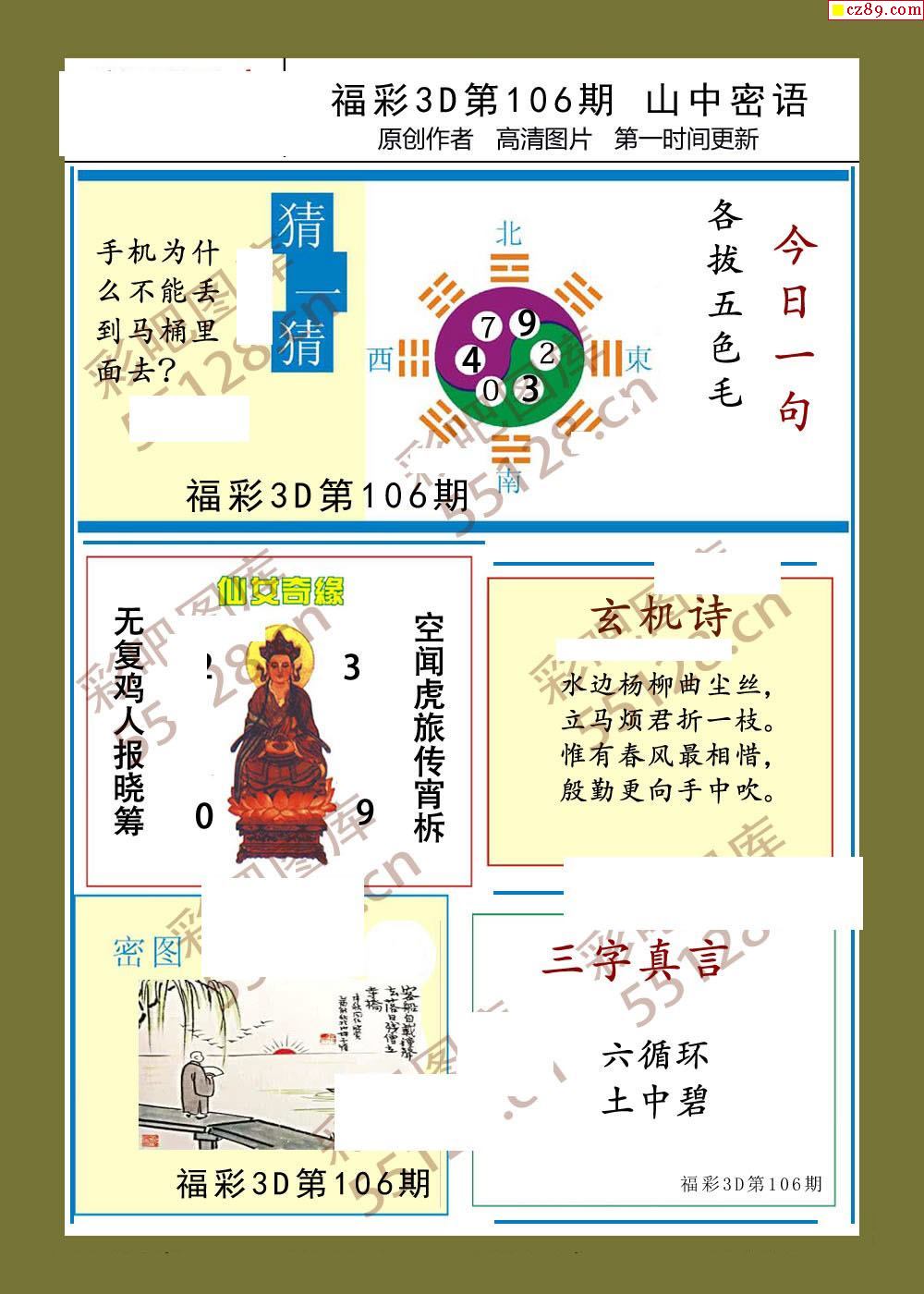 福彩3d26年106期山中密语彩报