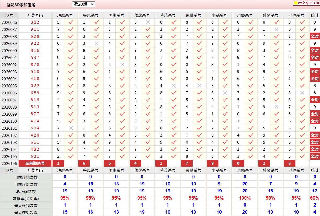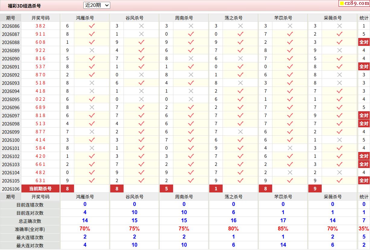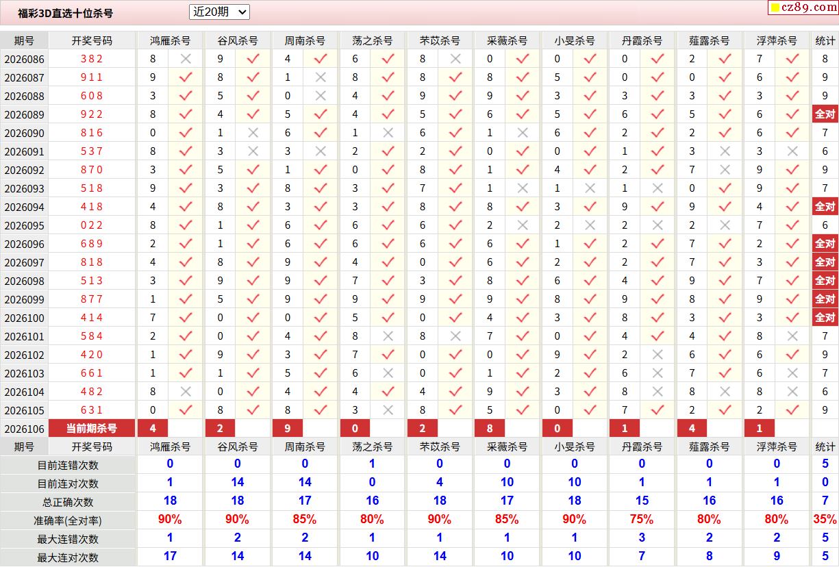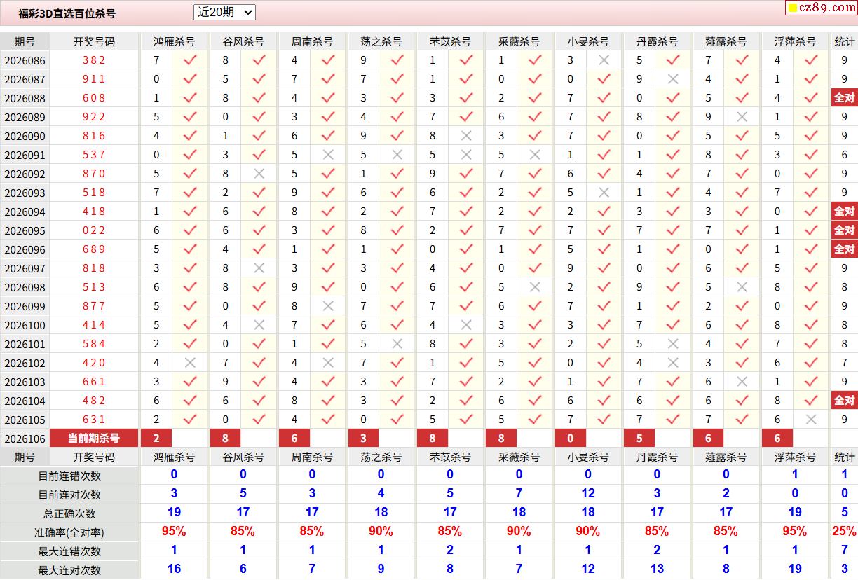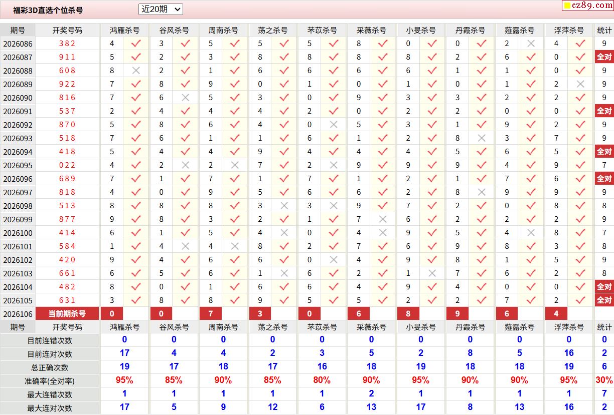26年106期彩宝贝专家福彩3D杀号定码图表