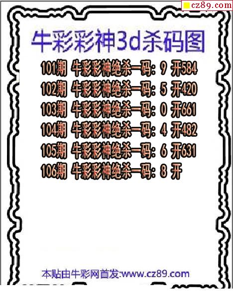 牛彩彩神杀码2026106期3d图谜(原创)