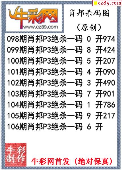 26年106期公孙梦体育彩票P3杀码图
