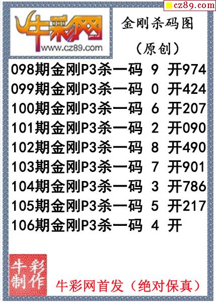金刚杀码106期体彩P3图迷(原创)