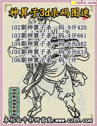 牛彩狙击手杀码2026106期3d图谜(原创)