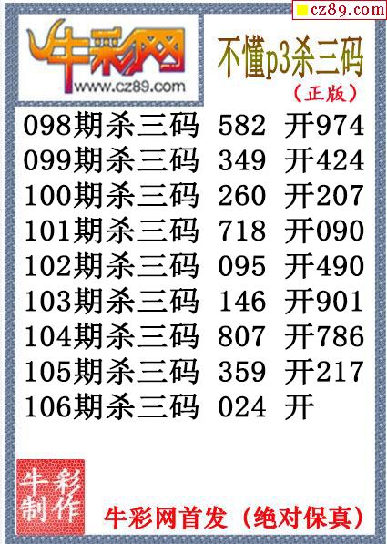 26年106期公孙梦体育彩票P3杀码图