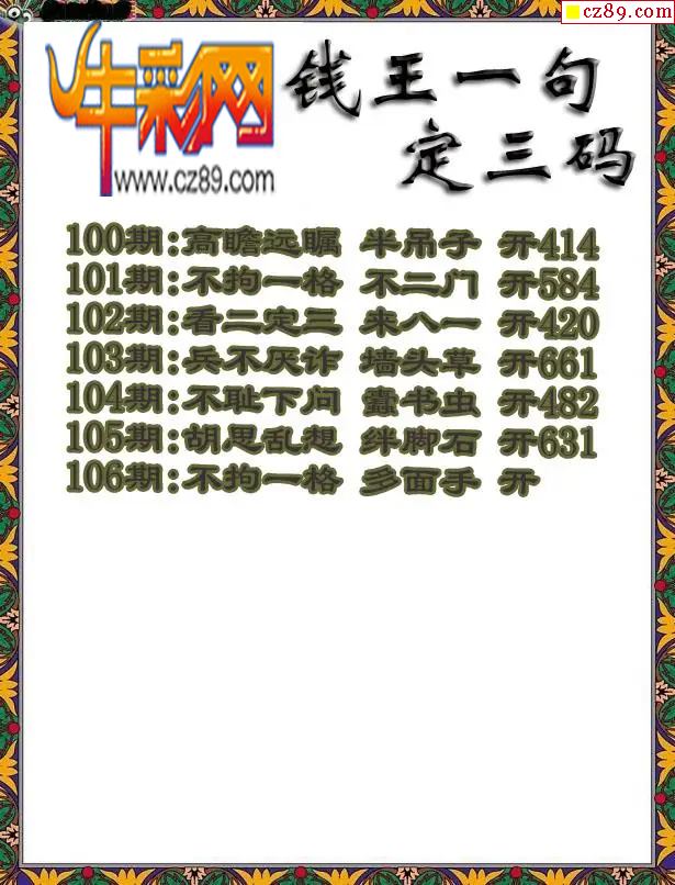 福彩3D2026106期彩赌侠一句定三码字图谜
