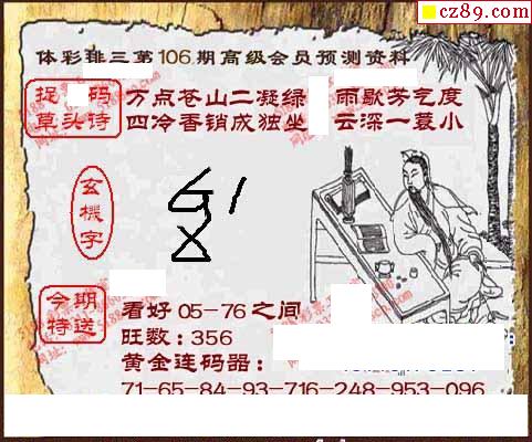清清漫玄图2026106期体彩P3图谜