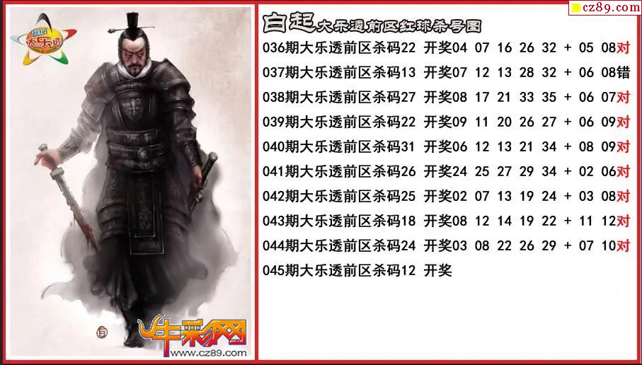 大乐透045期白起前区杀号图