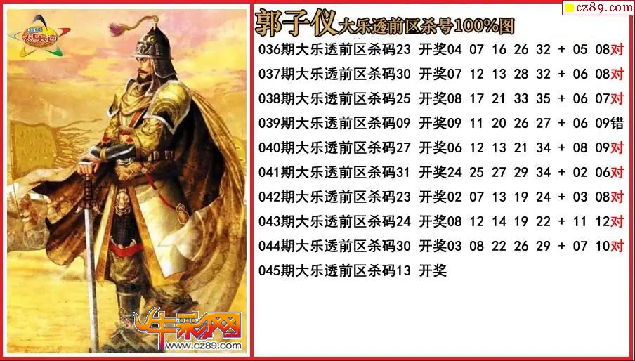 大乐透045期郭子仪前区杀号图