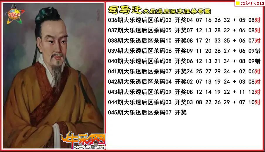 大乐透045期司马迁后区定胆杀号图
