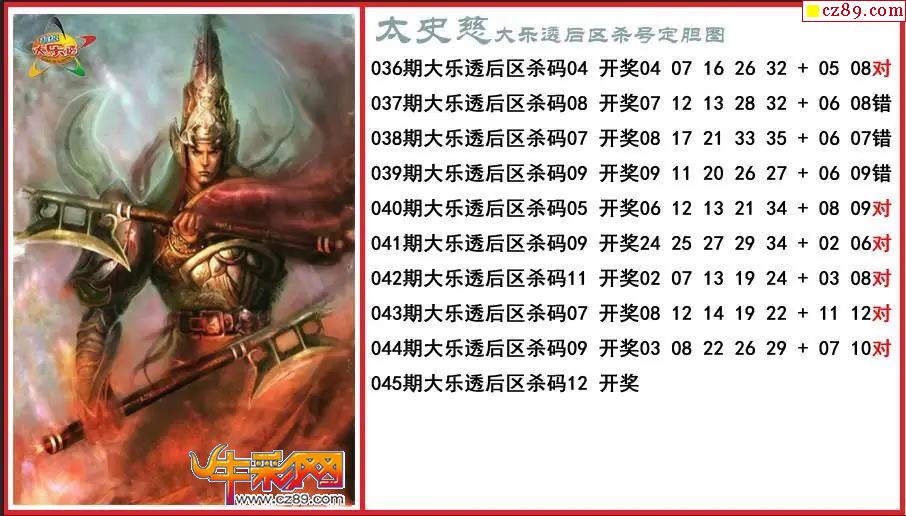 大乐透045期太史慈后区杀号定胆图