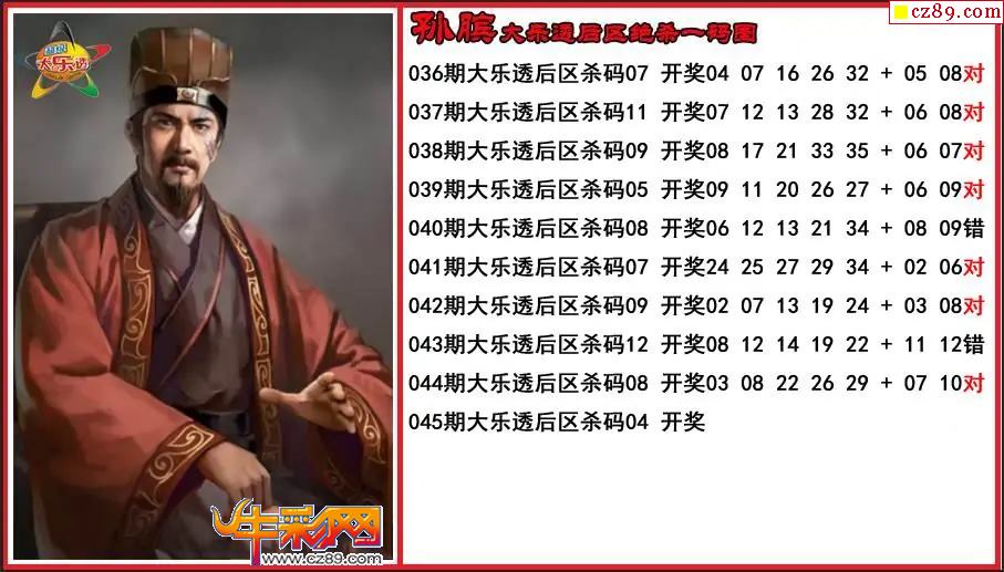 大乐透045期孙膑后区绝杀一码图