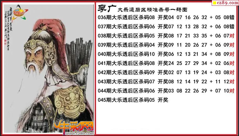 大乐透045期李广后区精准杀号一码图
