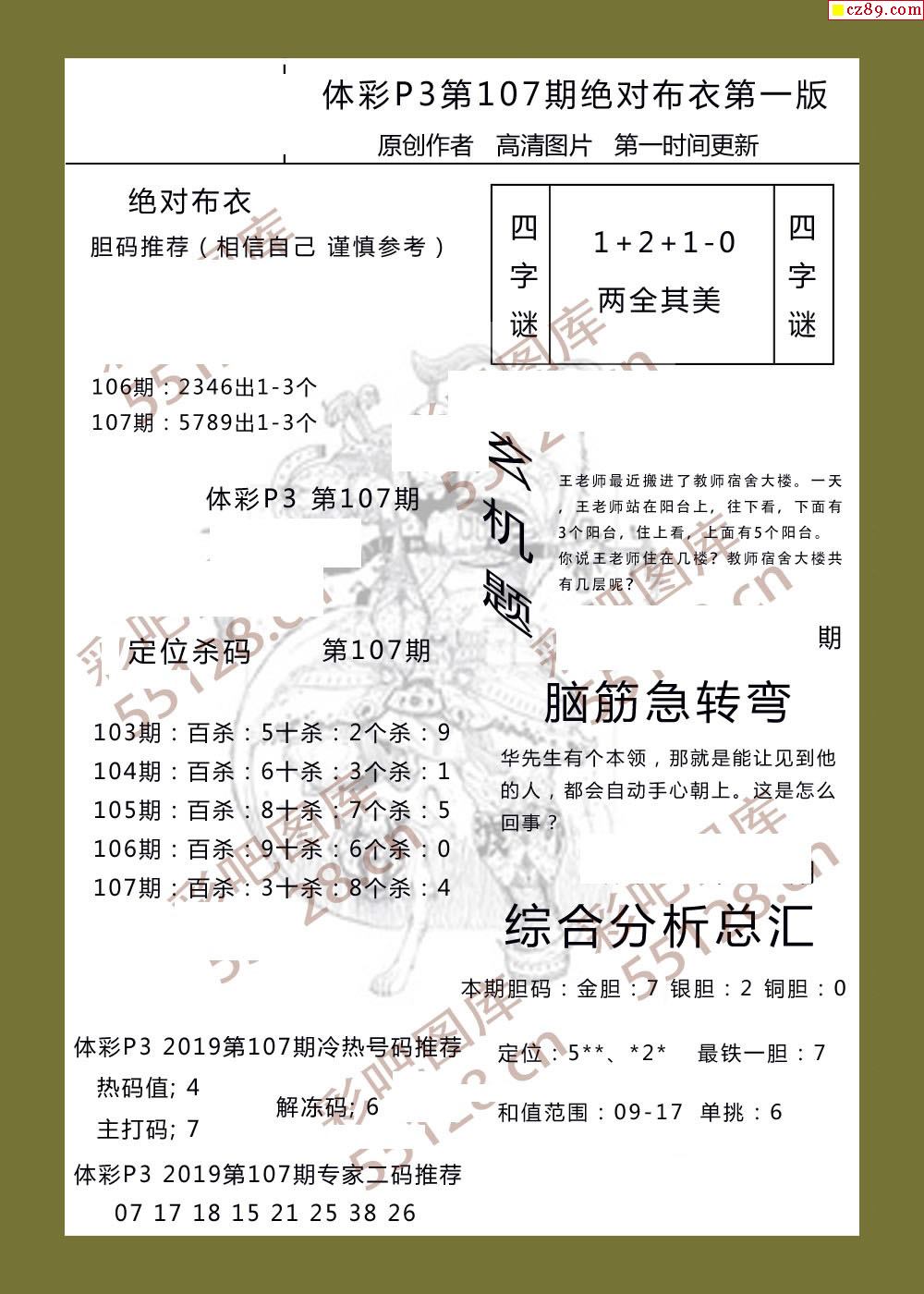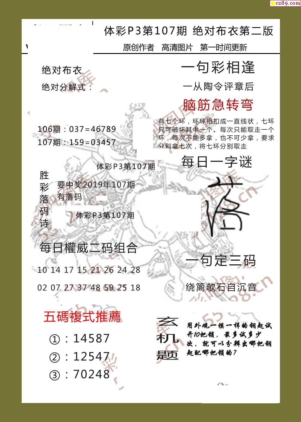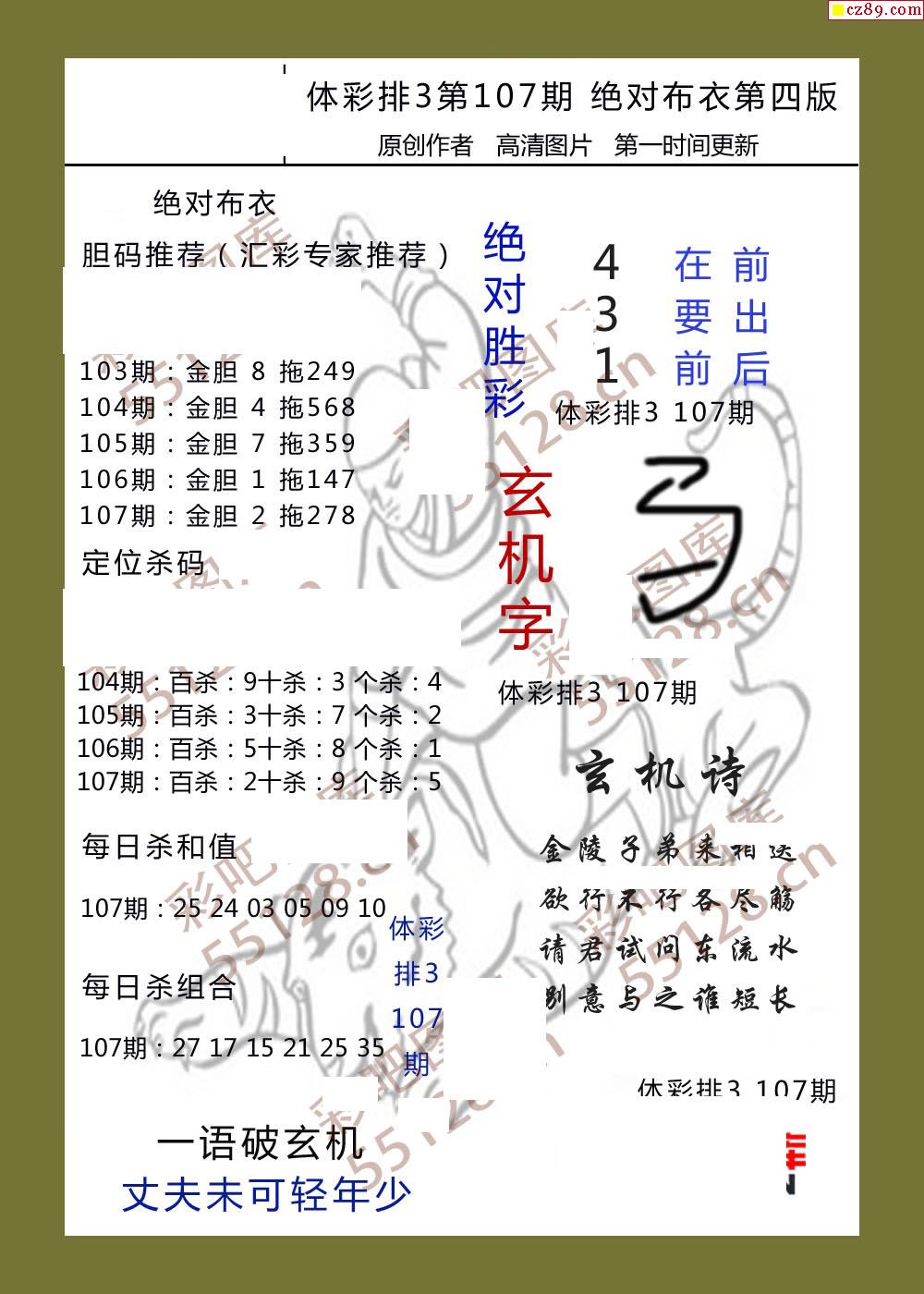 绝对布衣107期体彩p3图谜
