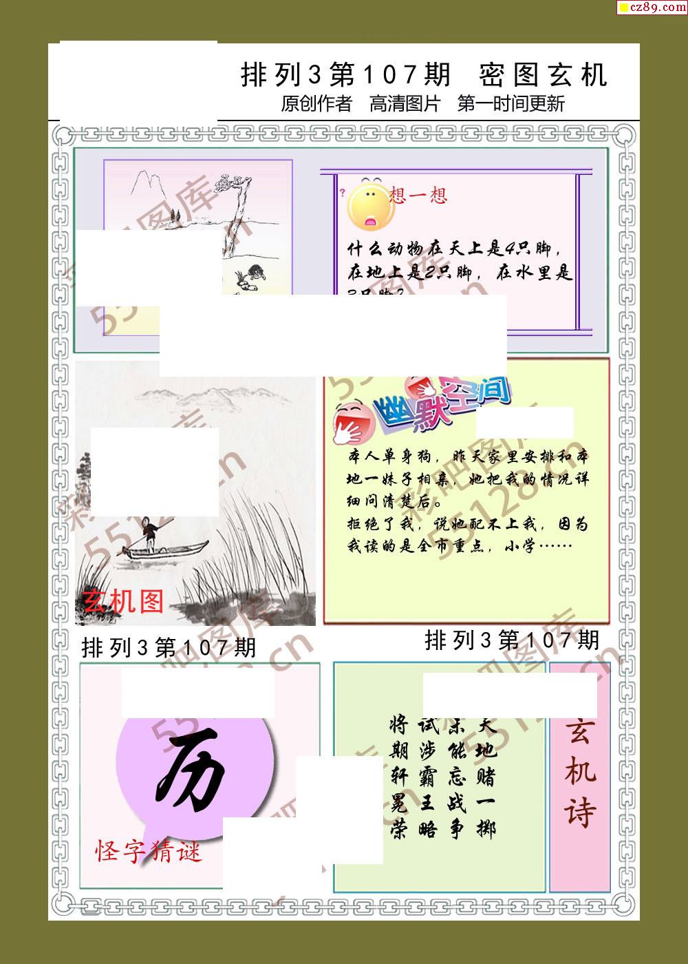 2026年107期牛彩网体彩P3画迷图谜汇总分享