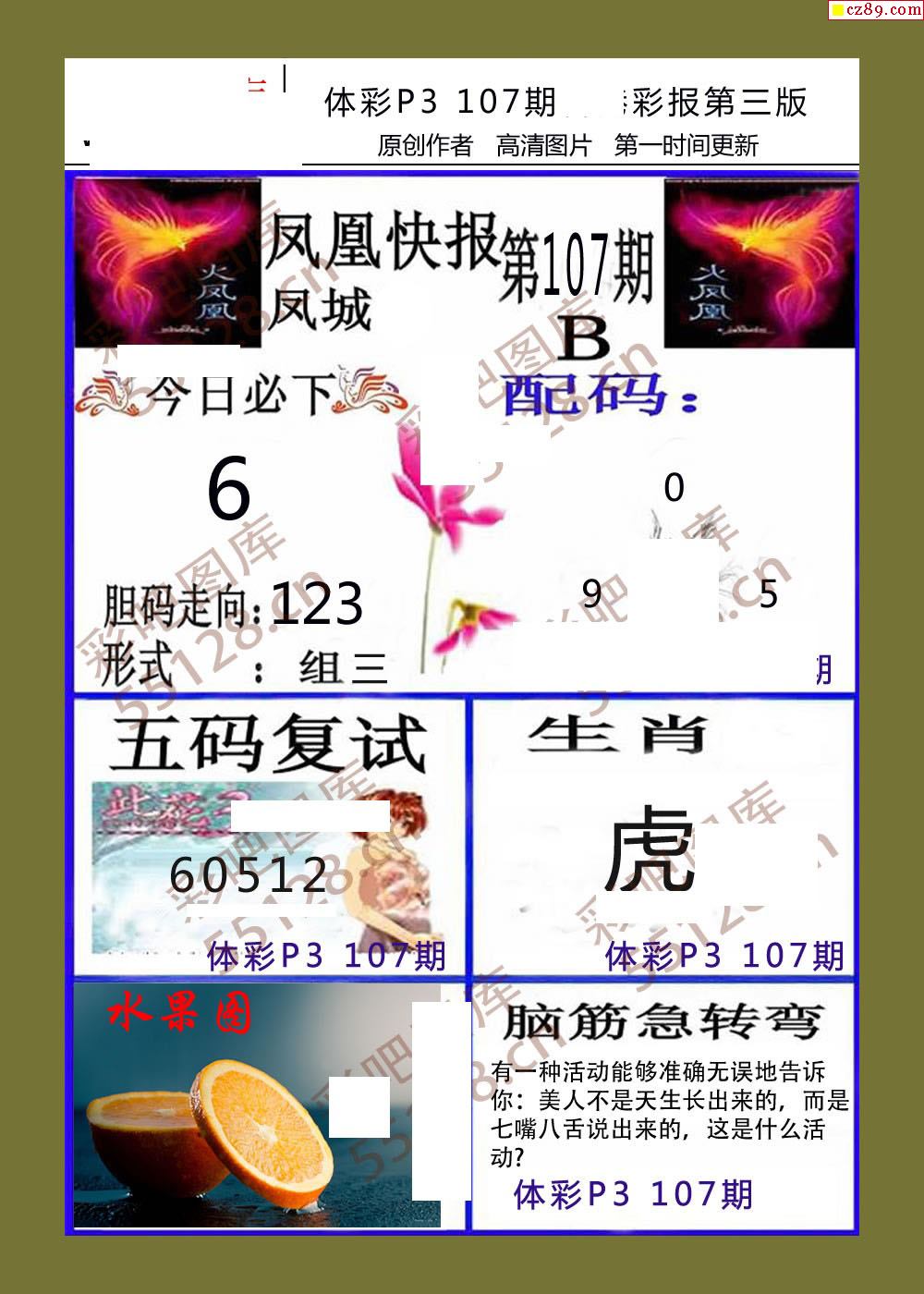 2026年107期牛彩网体彩P3画迷图谜汇总分享