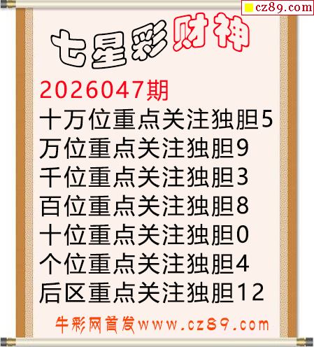 2026年047期七星彩 爱彩票推荐一位定胆