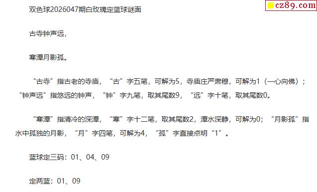 26年福彩双色球047期 白玫瑰定蓝球字谜