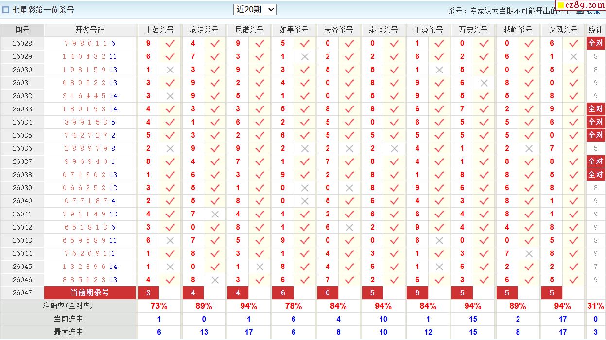 七星彩047期 澳客各路专家直选杀号预测推荐