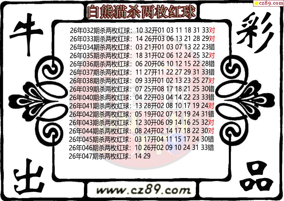 双色球047期 白熊猫杀两枚红球图迷