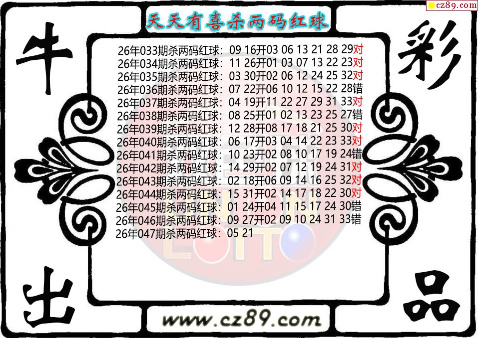 双色球047期 天天有喜杀两码红球图迷